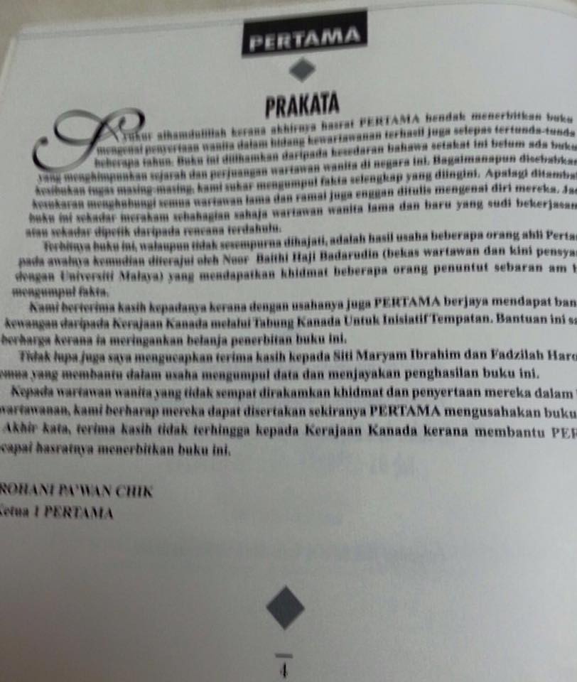 | The Preface by Rohani Pa'Wanchik, President of PERTAMA in 1996. |